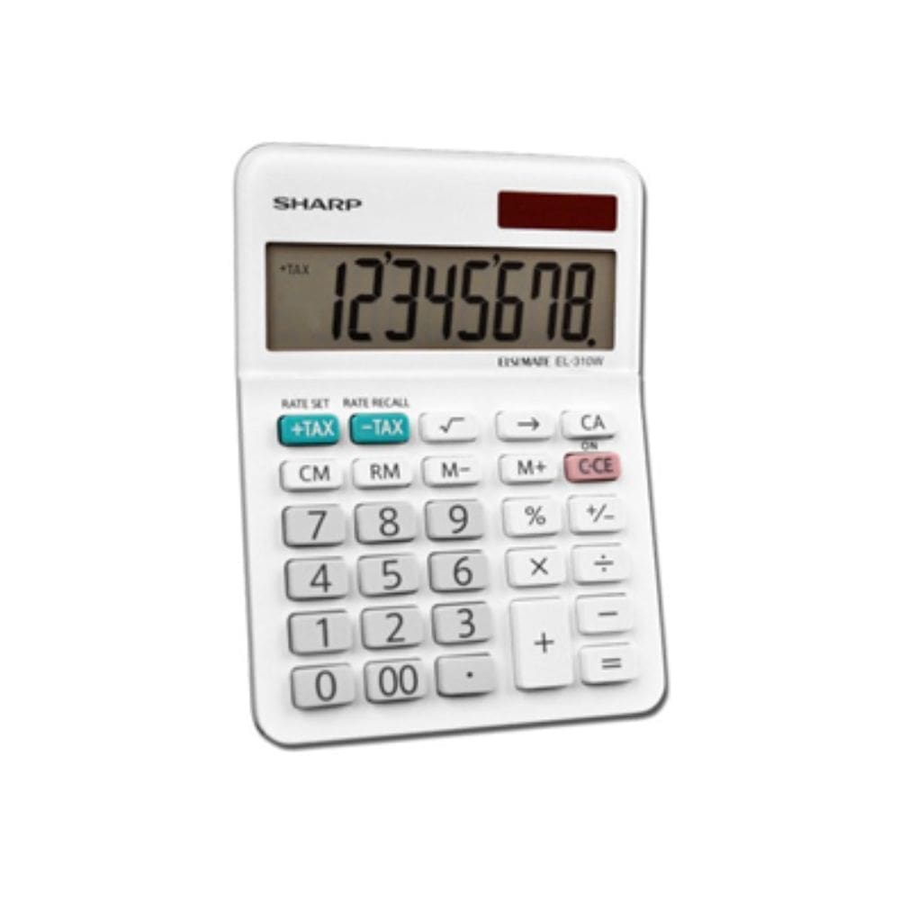 Semi-Desktop Calculator – EL-310WB Twin Powered Semi-Desktop Calculator, 8-Digit LCD Size: 3.4” x 4.6” x 1.1” PKG: 5/40